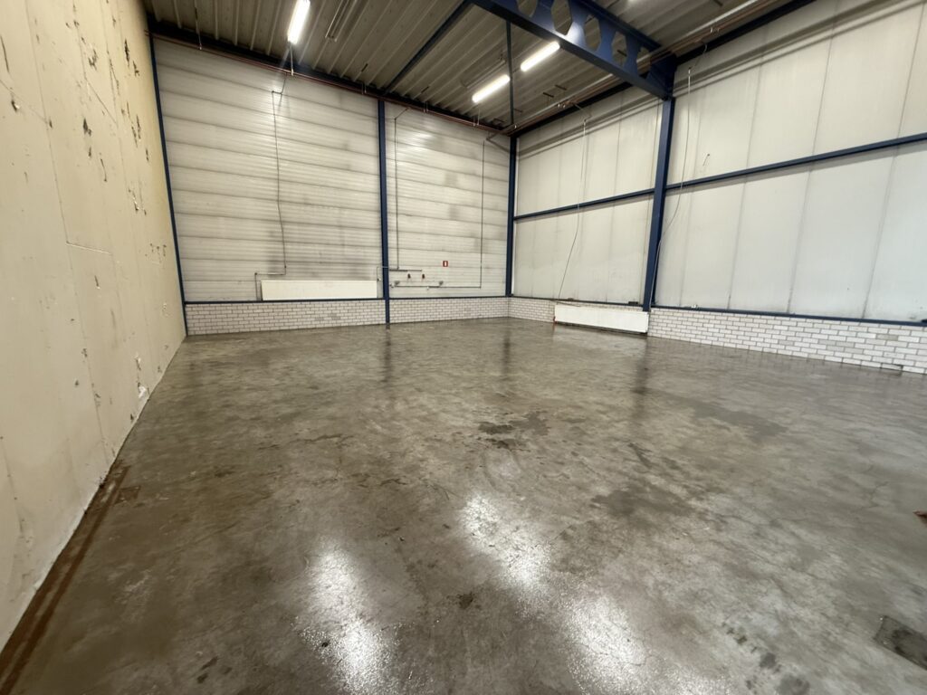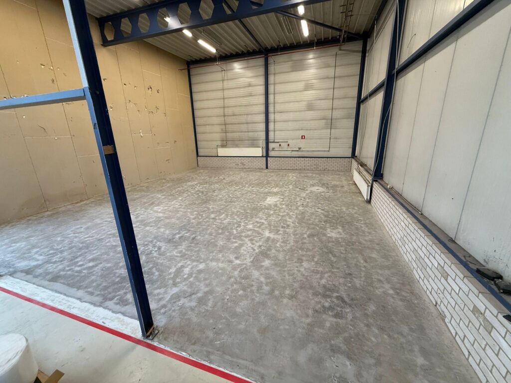 In twee dagen tijd hebben we een stevige, strakke vloer opgeleverd die aansluit bij de industriële omgeving. Een deel van de bestaande vloer is gerepareerd, het andere deel is vernieuwd. Volgend jaar pakken we de rest van de ruimte aan!