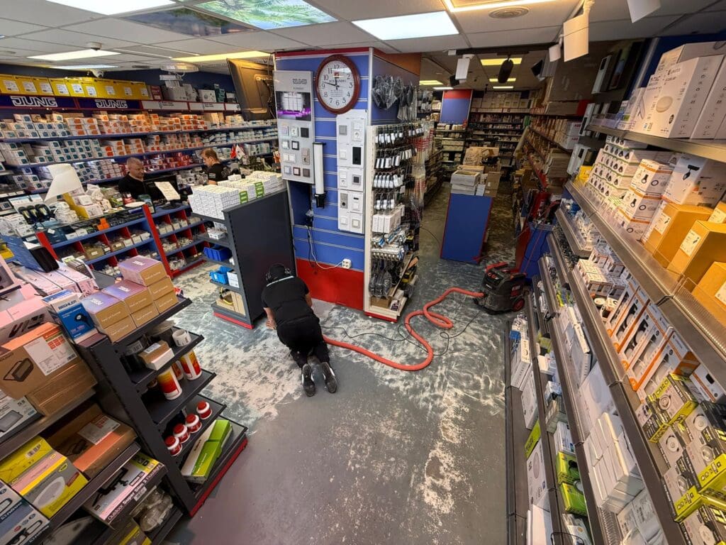 Het resultaat: een moderne, slijtvaste vloer die het visitekaartje van de winkel versterkt én jarenlang meegaat – precies zoals de klant het voor ogen had.